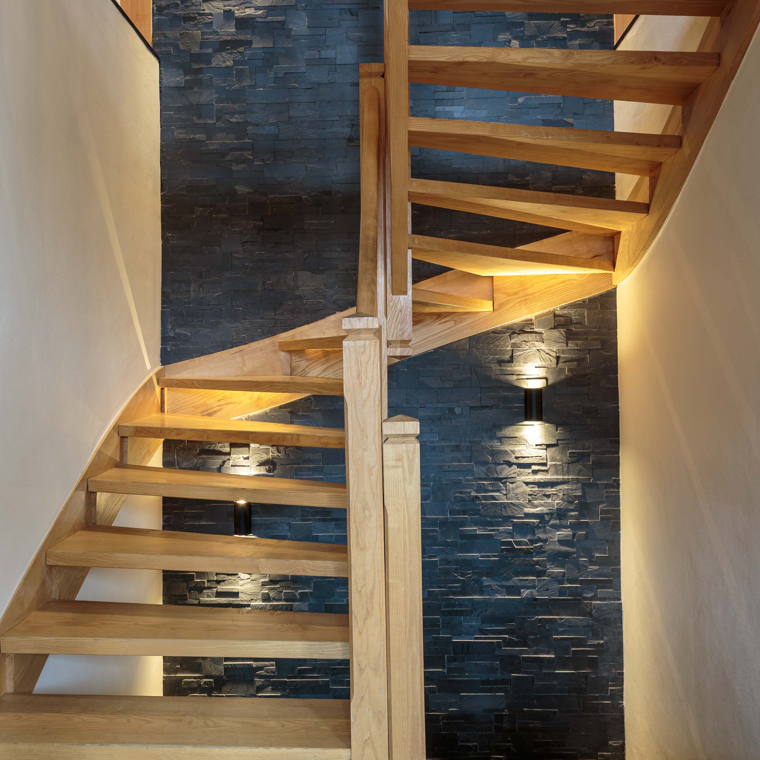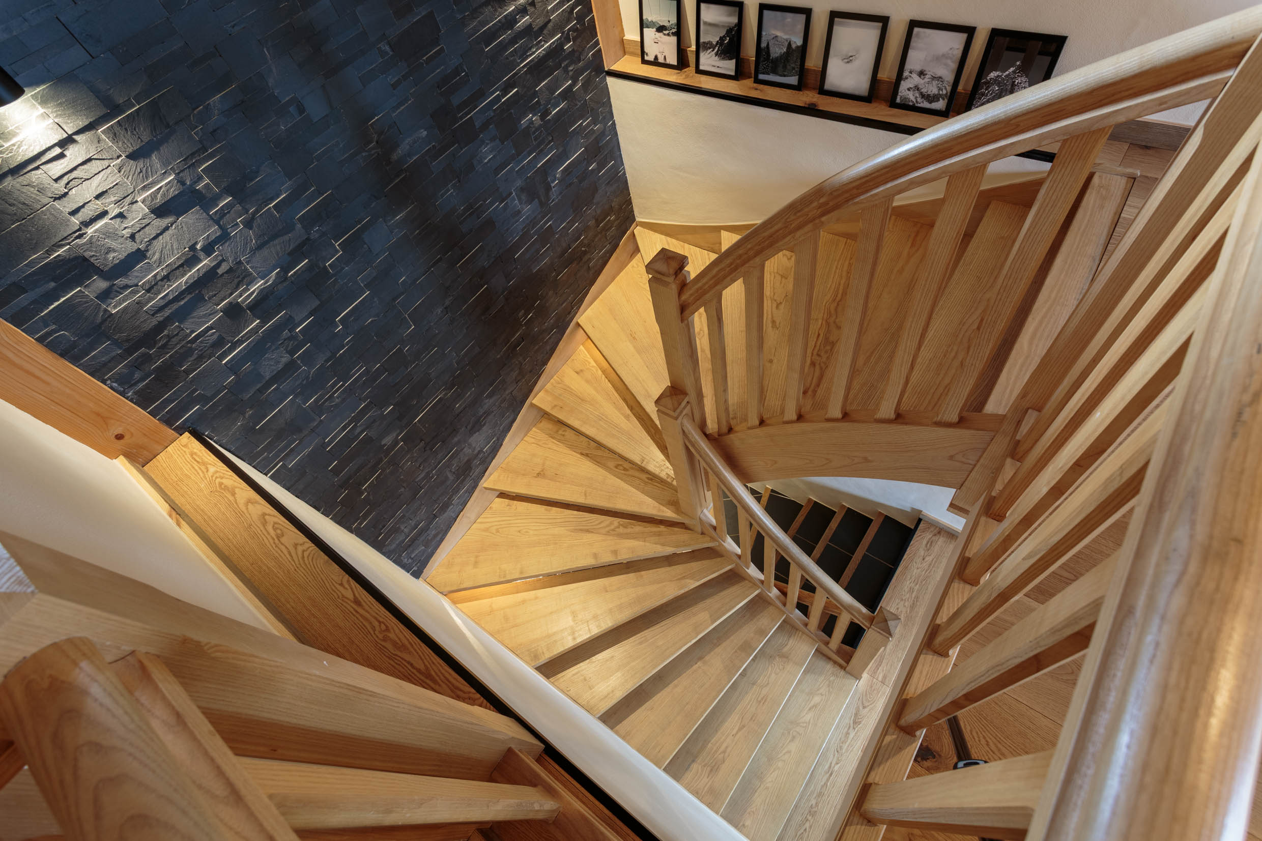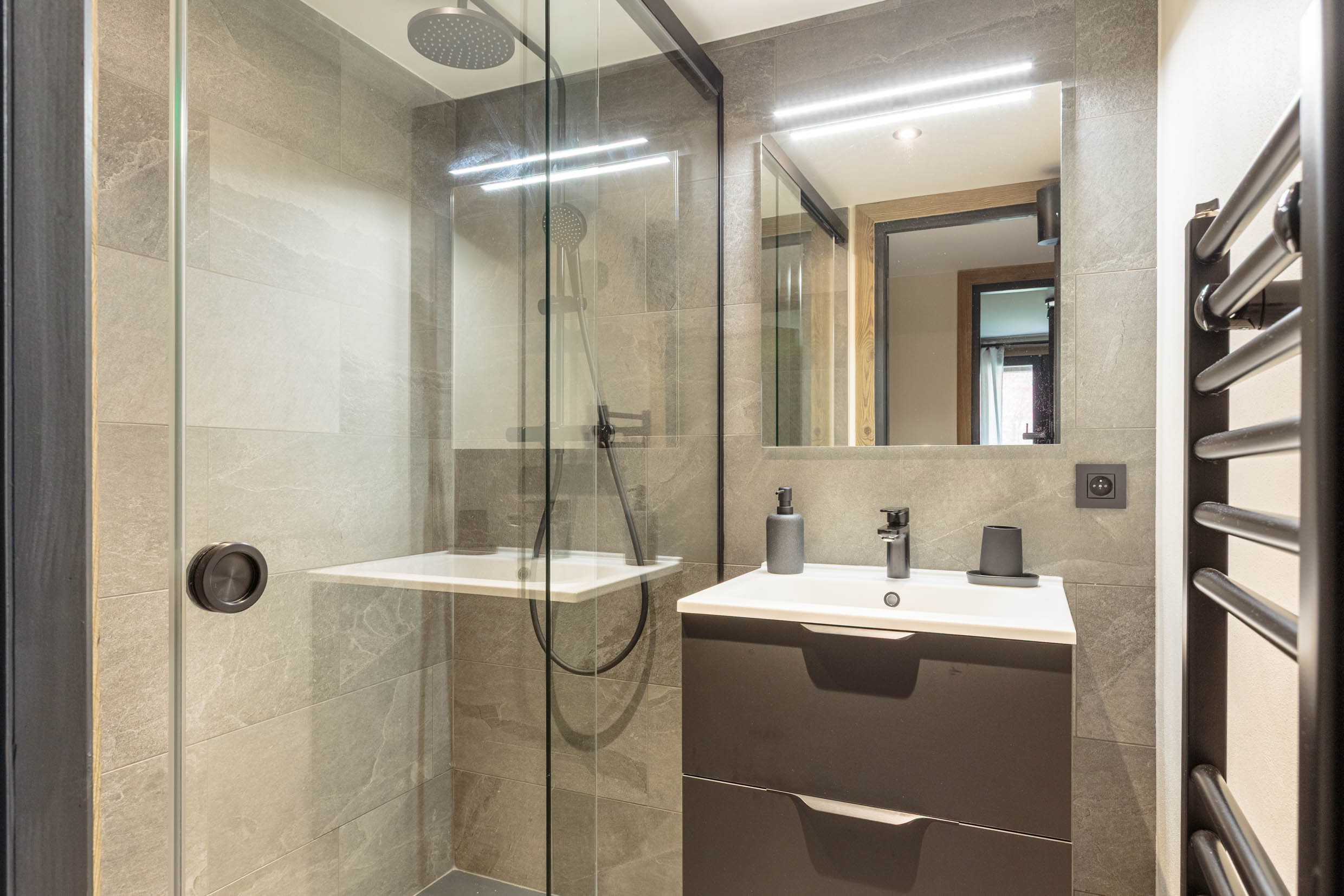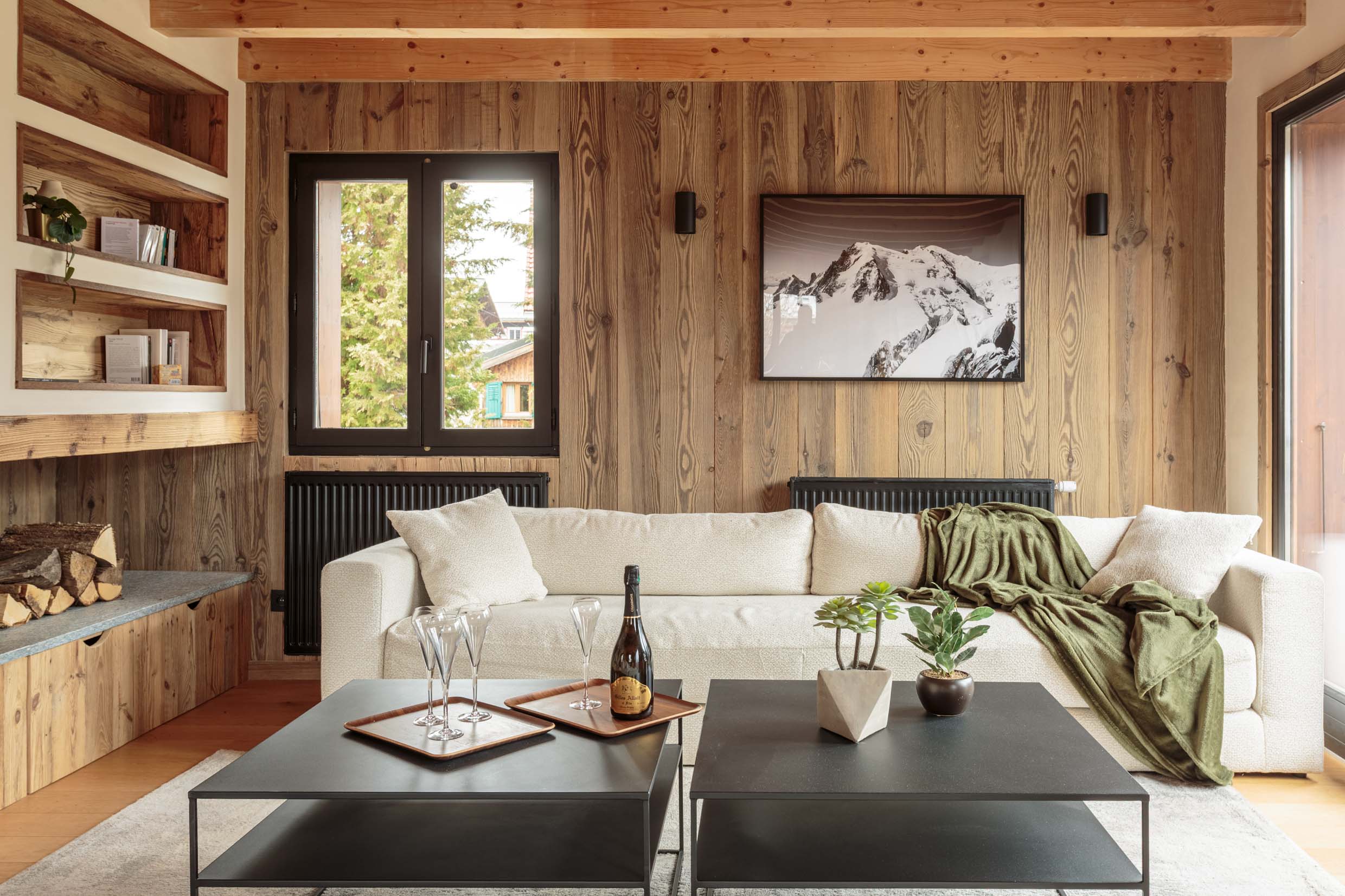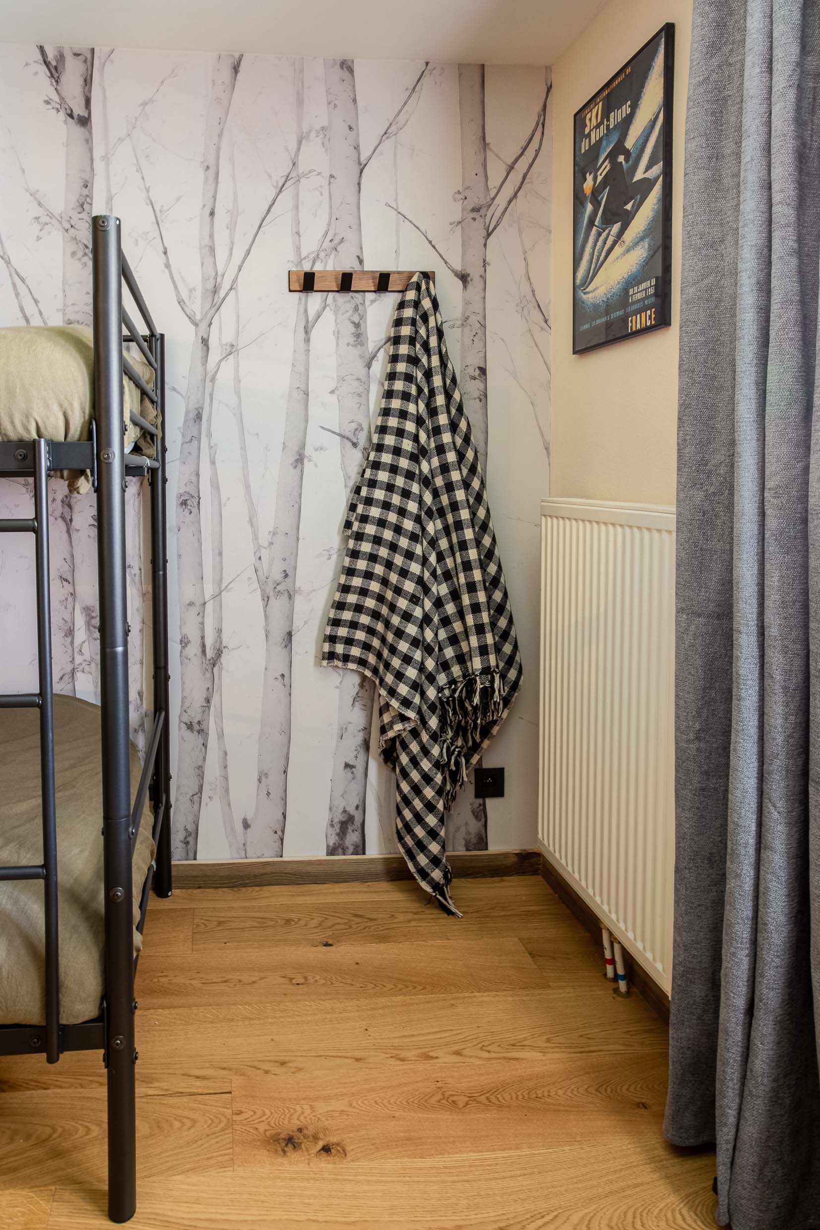 La reconfiguration des espaces redéfinit les usages du chalet. Cinq chambres, chacune accompagnée de sa salle de bains, offrent un confort intime et fluide. En complément, une salle TV, pensée comme un espace plus feutré, une pièce dédiée au bien-être avec sauna, ainsi qu’un skiroom fonctionnel viennent accompagner les rythmes de vie propres à la montagne.