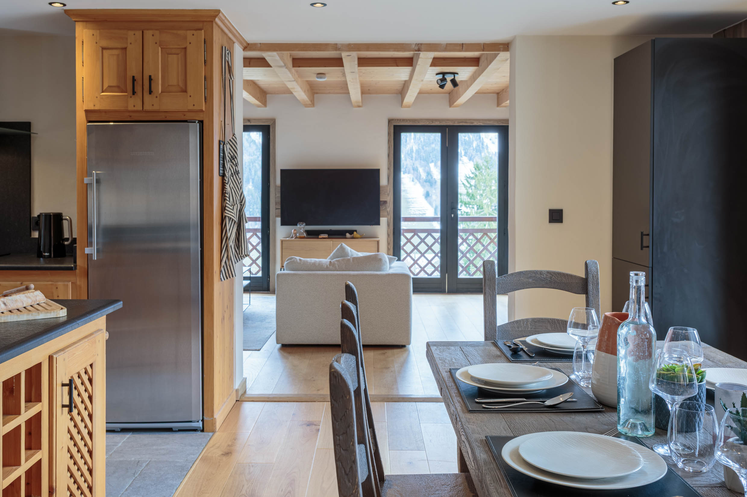 Le projet fait le choix de conserver certains éléments existants, notamment la cuisine et une partie des boiseries. Intégrés à la nouvelle composition, ils participent à une continuité naturelle entre l’état initial et l’intervention contemporaine.