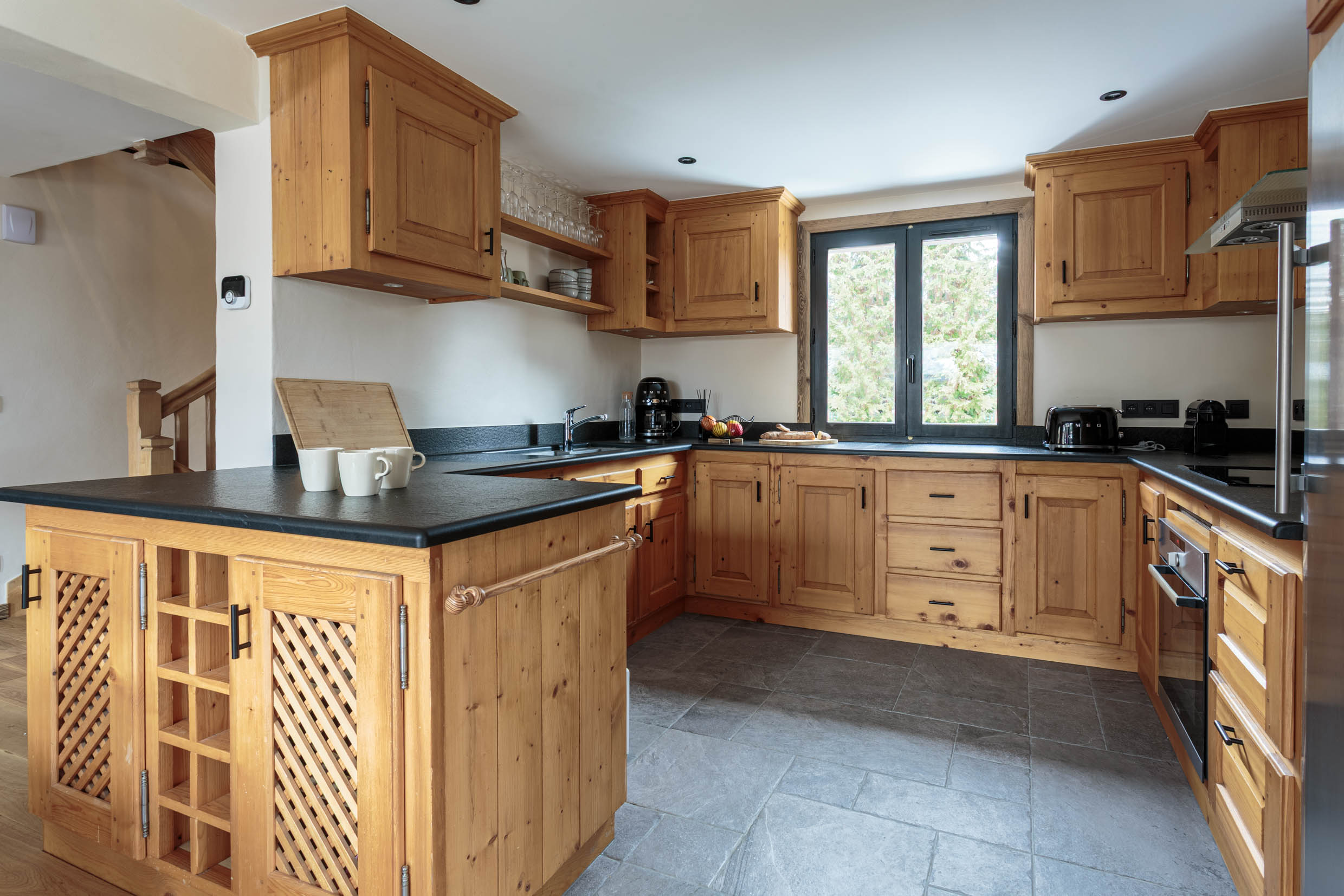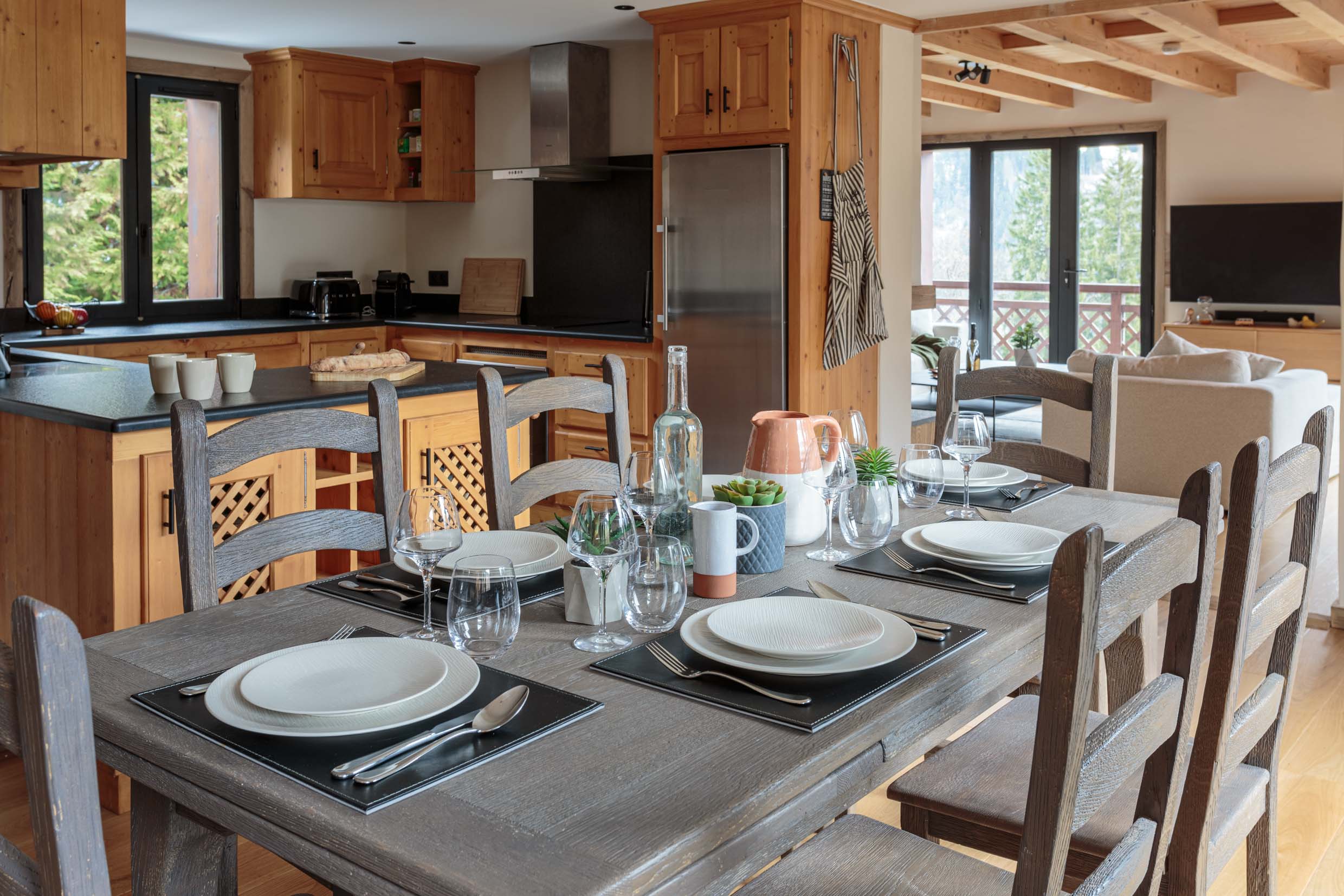 Le bois, travaillé dans toute sa noblesse, structure les volumes et dialogue avec une palette sobre et maîtrisée. Les lignes sont franches, les détails retenus, laissant place à une lecture apaisée de l’espace.